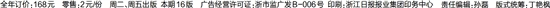 全年订价:168元 零售:2元/份 周二、周五出版 本期16版 广告经营许可证:浙市监广发B-006号 印刷:浙江日报报业集团印务中心