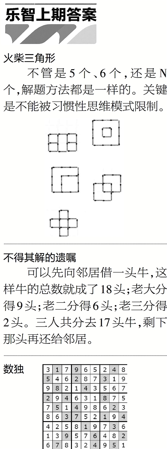 可以先向邻居借一头牛,这样牛的总数就成了18头;老大分得9头;老二分得6头;老三分得2头。三人共分去17头牛,剩下那头再还给邻居。