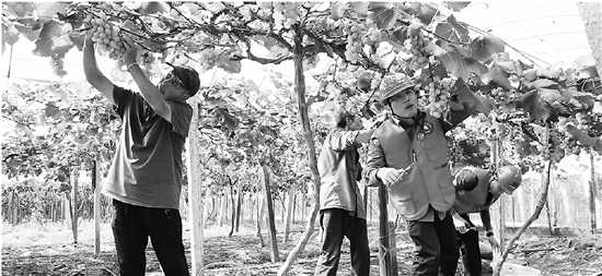 服务队成员帮农民摘葡萄。受访者供图