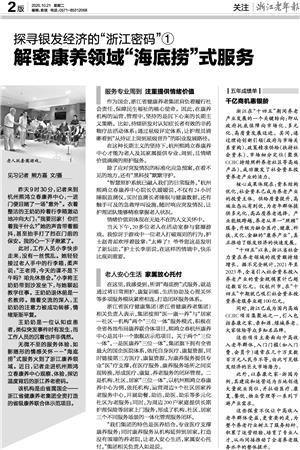 无微不至的服务体验、如影随形的情感关怀……“海底捞”式服务火到了浙江康养领域。近日,记者走进杭州熙鸿立春康养中心观察、体验,探访温度背后的浙江养老密码。