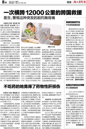 当地医院就诊后,发现她的各项肝功能指标都异常,谷丙转氨酶高达700国际单位每升(女性正常低于40国际单位每升),总胆红素高至59.7微摩尔/升(正常成人应低于17.1微摩尔/升),考虑是肝功能不全,进行了护肝治疗,但效果并不明显,被转至浙江大学医学院附属第一医院感染病科进一步诊治。