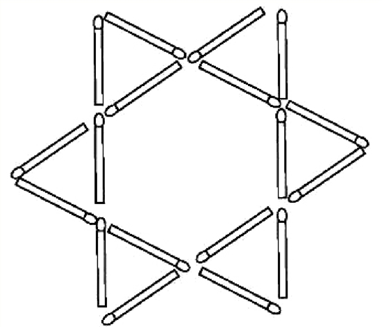 该图是一个由18根火柴组成的六角星,要怎样移动其中的6根火柴,让它变成一个由六个菱形组成的花朵呢?
