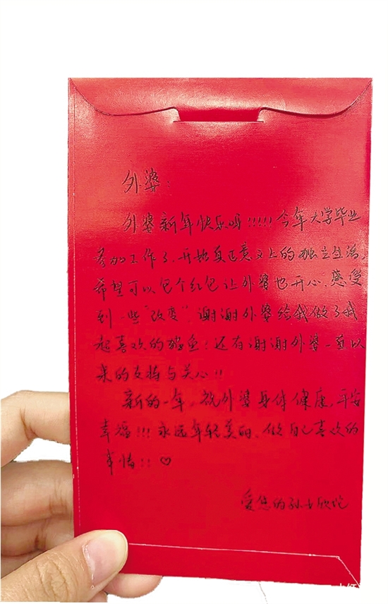 网上说晚辈给长辈红包,叫做“添岁包”,有祝愿身体安康,长命百岁的寓意。 赵欣林 摄