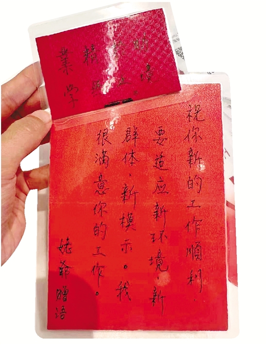 小顾塑封保存姥爷留下的赠言。 受访者供图