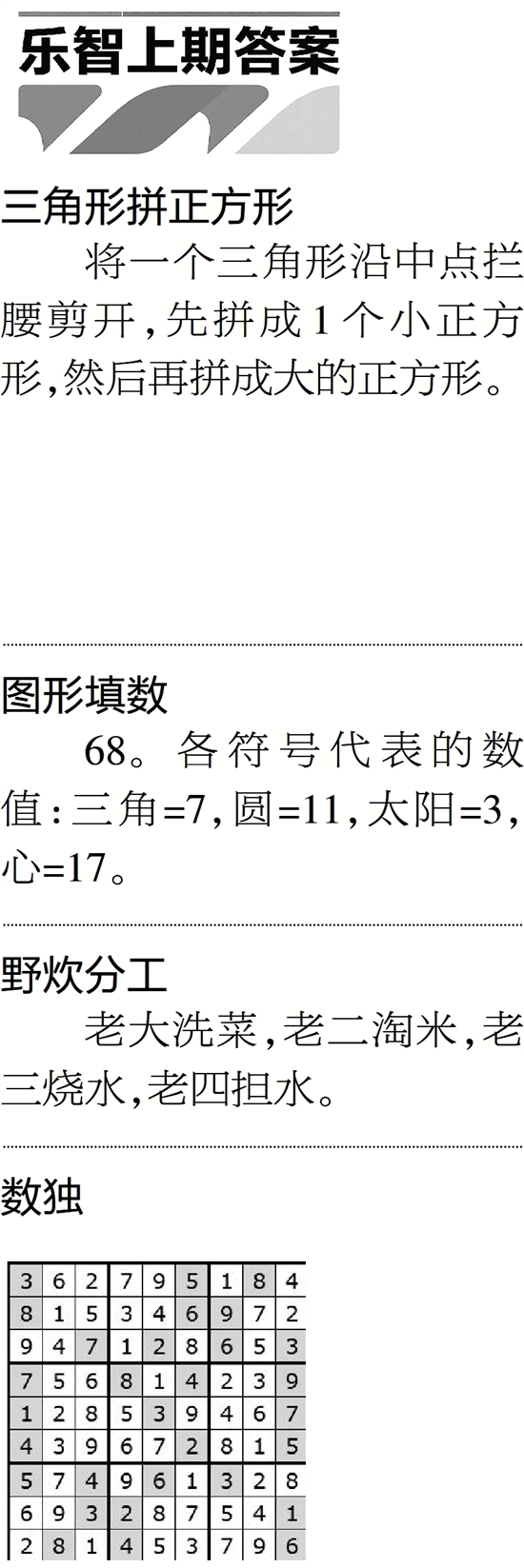 老大洗菜,老二淘米,老三烧水,老四担水。