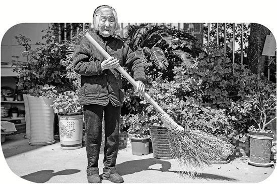 邵玉珍打扫卫生。受访者供图
