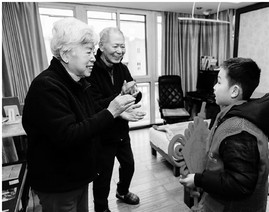 红领巾志愿者为老人送新年祝福。 受访者供图