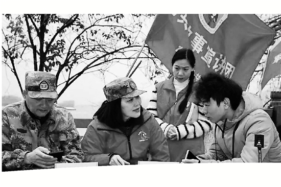 (上图左)富阳区老兵宣讲团志愿者为居民做创业辅导。
