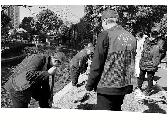 (上图中)钱塘区老同志开展“银龄添绿共筑家园”义务植树活动。