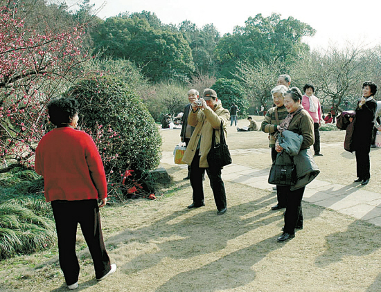 杭州灵峰的梅花开得正艳,吸引了许多老年朋友们前往观赏。 尹立钢 摄