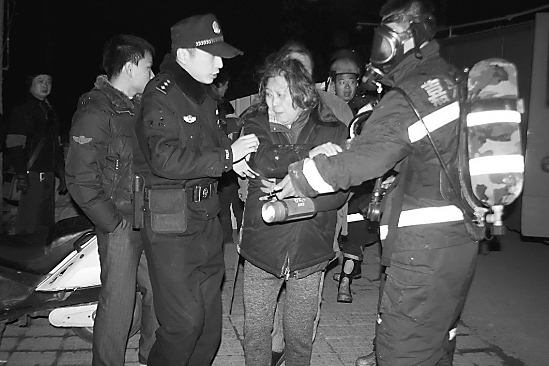 当晚,河北人李某在自己经营的保健品店内看电视,突然他听到外面有人喊“着火了”,他立即报了警。经过消防官兵半个多小时的战斗,大火被扑灭,两名年迈的老人也被成功救出。 包胜友 摄