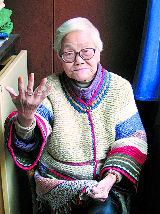 龚奶奶用碎毛线花了五年的功夫,织了这件花毛衣。
