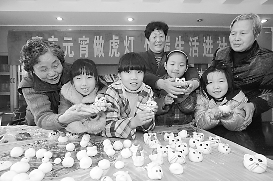 日前,杭州市小营街道紫金社区组织了个性老虎小汤圆制作比赛,居民用各种自制的水果、蔬菜汁做出五彩缤纷、大小不同的老虎汤圆,相互赠送表达虎年的期望与祝福。