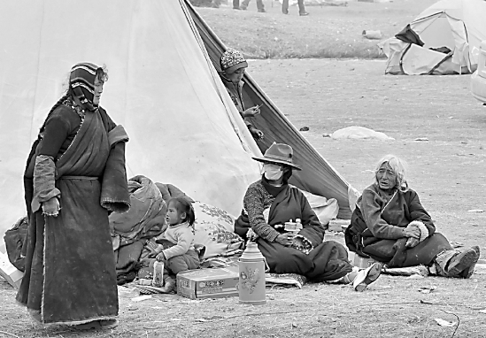 玉树地震造成大面积房屋倒塌,很多群众失去亲人、失去家园。然而,地震压不垮人们对生活的信心,受灾群众在临时居住点积极自救,在大灾中坚强地生活下去。