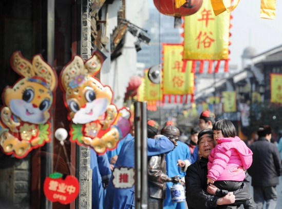 1月31日,杭州清河坊历史街区张灯结彩,年味渐浓。据了解,新春佳节,这里将举办“初一到十五,老街看年俗”活动,包括百姓祈福大典、兔年百家宴、开市迎财神等。市民和游客能体验丰富的市井民俗风情。