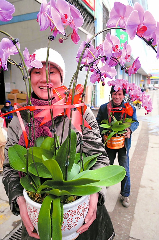 农历兔年临近,宁波各大花卉市场和鲜花商店年宵花生意红火,不少市民购买花卉扮靓居室,捧着鲜花走亲访友。 龚国荣 摄