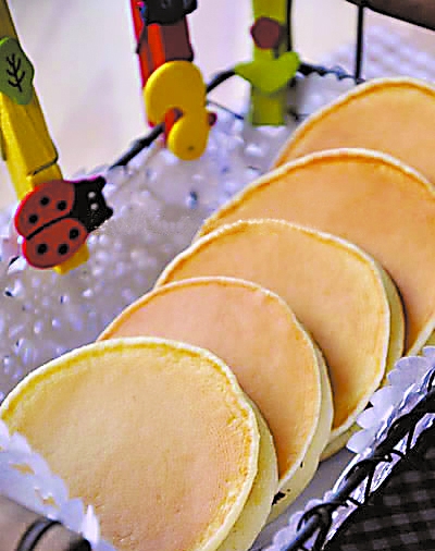 | 红豆铜锣烧 原料:面粉、细砂糖、牛奶、鸡蛋、泡打粉、红豆沙、黄油。 做法: 1、鸡蛋打入盆中,加入细砂糖,再加入牛奶,混合均匀。 2、加入面粉拌均匀,静置15分钟左右。 3、准备馅料:将黄油和红豆沙倒入锅中,小火炒至黄油融化,与豆沙搅拌均匀。 4、锅烧热(不放油),而后转小火,用勺子舀一勺面糊到锅子里,让面糊以垂直的方向流入锅中,就会在锅子里形成一个圆形。 5、小圆饼炸黄即可出锅。 |