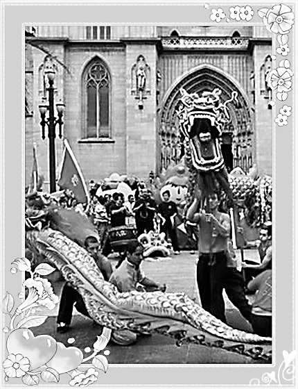 老外在巴西圣保罗街头舞龙闹新春
