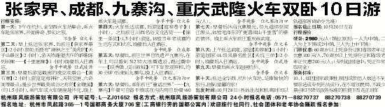 张家界、成都、九寨沟、重庆武隆火车双卧10日游