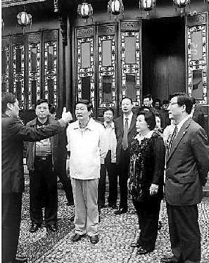 2002年5月5日,朱总理(前排左三)考察胡雪岩故居。前排左二为时任浙江省委书记张德江,前排右一为时任浙江省长柴松岳。