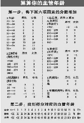 香港“心血管联盟”于去年11月至今年5月对市民进行了全港首个“血管年龄”评估调查,受访者年龄介于18至84岁。结果发现,51%受访者的血管年龄较实际年龄高,当中27%更比实际年龄高出10年;40—70岁年龄层中,有四至六成出现血管老化问题;高血压患者的血管老化机会较正常血压人士高4.2倍;56%的高血压患者不知道自己血压过高。 普通人要了解自己的血管年龄,最简单的方式是评价一下自己的饮食习惯和生活方式,如是否以肉食为主,是否缺少体力活动,是否长期大量吸烟,是否长期感到心理压力等。如果这些因素都存在,则血管年龄可能高于正常同龄人。 |