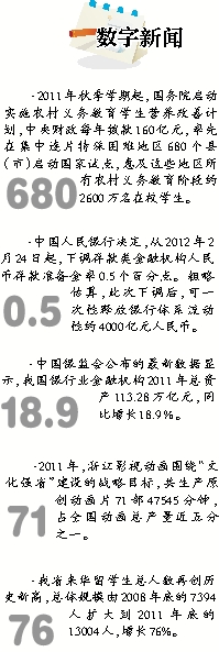 ·2011年秋季学期起,国务院启动实施农村义务教育学生营养改善计划,中央财政每年拨款160亿元,率先在集中连片特殊困难地区680个县(市)启动国家试点,惠及这些地区所有农村义务教育阶段约2600万名在校学生。