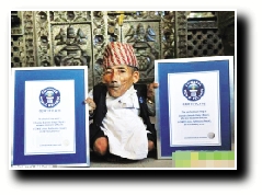 | 尼泊尔: 全球最矮者 身高仅54.6厘米 尼泊尔一名72岁的老人唐吉已被确认为是世界上最矮的人,身高仅有54.6厘米。 唐吉此前就自称世界最矮,并寻求入选吉尼斯世界纪录。此次他来到尼泊尔首都加德满都,接受医生和《吉尼斯世界纪录》官员的测量。最终,唐吉以54.6厘米的身高打破世界纪录,被认定为世界上最矮的人。26日,吉尼斯世界纪录官员向唐吉授予了认证证书。 据悉,唐吉居住在尼泊尔一个偏远山区的小村庄,至今未婚。他表示,他现在的愿望是周游全国和世界。 据报道,此前世界最矮男子的吉尼斯纪录保持者是菲律宾的朱雷巴拉文,他身高60厘米。 |