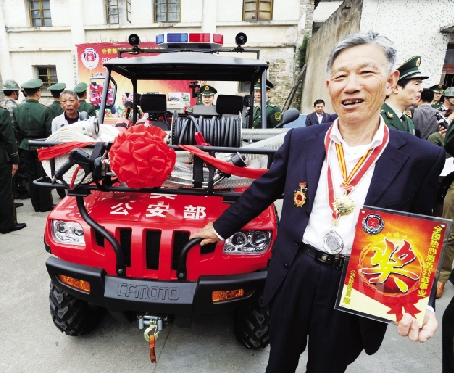 日前,上虞市道墟镇68岁的义务消防员阮炳炎喜获公安部赠送的一辆消防车。阮炳炎义务从事消防工作20多年,扑救大小火灾几千次,去年被推荐为全国道德模范候选人。