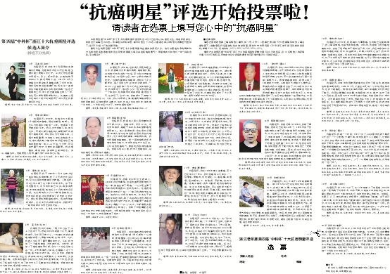 浙江老年报第四届“中科杯”十大抗癌明星评选