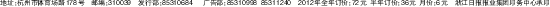 地址:杭州市体育场路178号 邮编:310039 发行部:85310684  广告部:85310998 85311240 2012年全年订价:72元 半年订价:36元 月价:6元 浙江日报报业集团印务中心承印