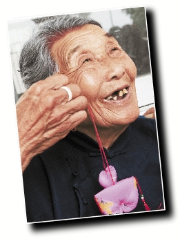 新昌县城关敬老院的老人收到香囊,喜笑颜开。 通讯员 郭志贵 摄