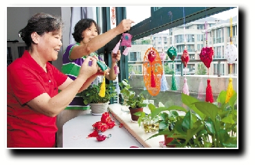 杭州桂花园社区的居民用各式各样的香袋,给窗口平添一抹靓丽。 通讯员 张贞 记者 张晖 摄