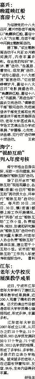 为迎接党的十八大召开,嘉兴市委老干部局以“晚霞映红船,喜迎十八大”为主题,在老干部中开展主题教育活动。