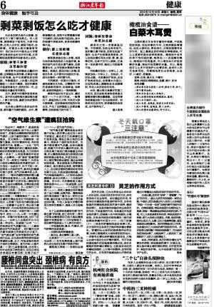 浙江老年报 健康 00006 剩菜剩饭怎么吃才健康 2012-12-19 2840445 2 2012年12月19日 星期三