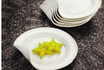 弯边的盘子,让你知道“粒粒皆辛苦”的道理。翘起的弯边,使你在使用勺子时能更方便地舀起食物。
