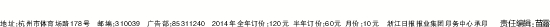 地址:杭州市体育场路178号 邮编:310039 广告部:85311240 2014年全年订价:120元 半年订价:60元 月价:10元 浙江日报报业集团印务中心承印