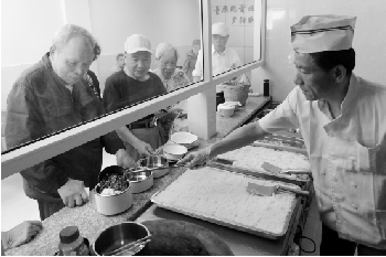 毛金国师傅给居民打菜