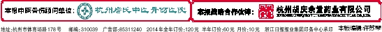 地址:杭州市体育场路178号 邮编:310039 广告部:85311240 2014年全年订价:120元 半年订价:60元 月价:10元 浙江日报报业集团印务中心承印