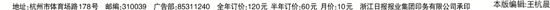 地址:杭州市体育场路178号 邮编:310039 广告部:85311240 全年订价:120元 半年订价:60元 月价:10元 浙江日报报业集团印务有限公司承印