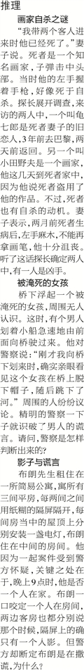 “我带两个客人进来时他已经死了。”妻子说。死者是一个知名画家,子弹击中头部。当时他的左手握着手枪,好像死于自杀。探长展开调查,来访的两人中,一个叫龟七郎是死者妻子的旧恋人,3年前去巴黎,两天前返回。另一个叫小田野夫是一个画家,他这几天到死者家中,因为他说死者盗用了他的作品。不过,死者也有自杀的动机。妻子表示,两月前死者生病后,左手麻木,不能再拿画笔,他十分沮丧。听了这话探长确定两人中,有一人是凶手。