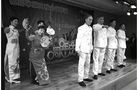近日,杭州市第三社会福利院迎来了1周岁生日。老人们和杭州电视台生活频道金秋艺术团一起过了一个丰富多彩的庆生会,并上台表演了拿手节目。 本报记者 周瑜 文/摄