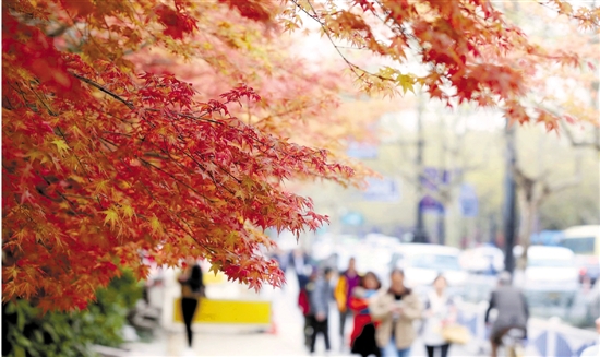 赏红枫叶非要在秋天吗?不一定!近日, 杭州曙光路一片枫叶红似火,给春天的杭城增添了一道靓丽“枫彩”。