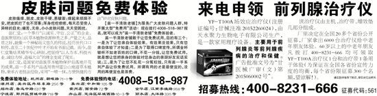 厂里决定在全国20多个省份公开征募,厂家拿出6000台治疗仪给中老年朋友体验。60岁以上的中老年朋友凡拨打400-8231-666均可领取YF-T100A治疗仪1台和治疗带1条用于体验(为保证在全国各省份宣传力度的均衡,每个省份限征募300个名额,望谅解!)。