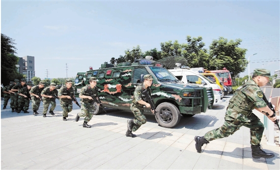 | 诸暨:服务G20反恐集结演练 7月22日,诸暨市举行反恐集结演练。通过演练,检验了全市反恐应急能力和预案、人员、装备建设落实情况,提高反恐处突实战能力,磨合指挥、通讯、信息传递等环节缝隙,增强社会整体联动意识。 郭斌 俞咪娜 摄 |