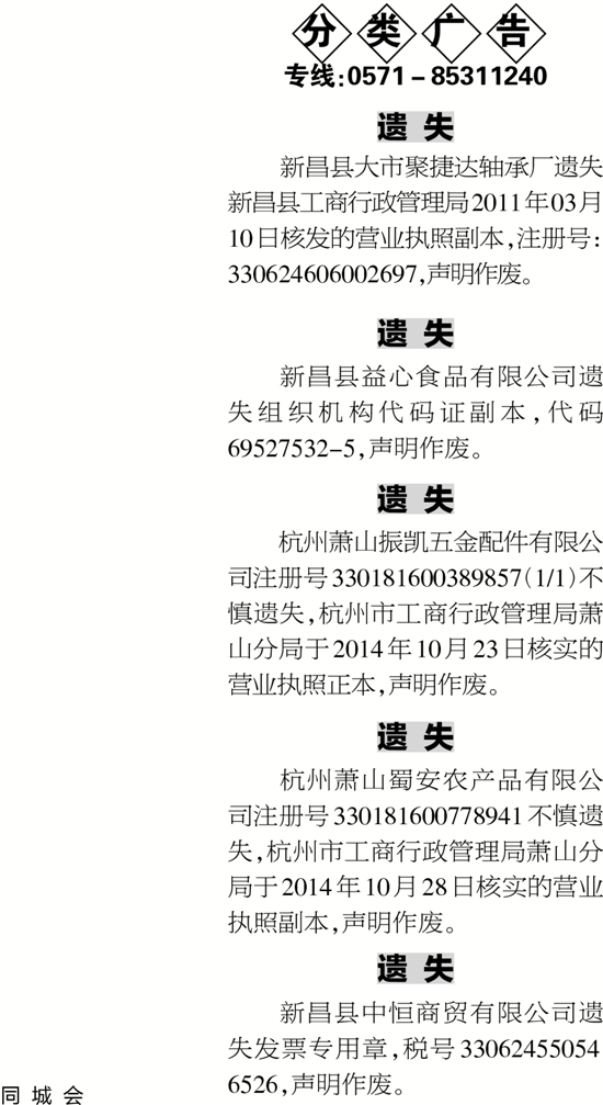 新昌县大市聚捷达轴承厂遗失新昌县工商行政管理局2011年03月10日核发的营业执照副本,注册号:330624606002697,声明作废。
