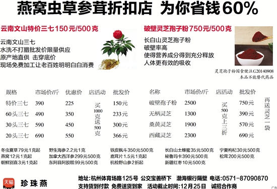 燕窝虫草参茸折扣店 为你省钱60%