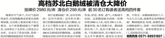 挂牌价2980元/床 清仓价298元/床 前30名订购读者送高档四件套