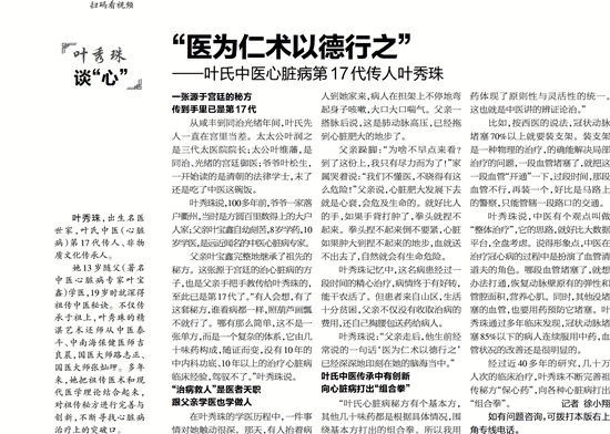 叶秀珠说:“父亲走后,他生前经常说的一句话‘医为仁术以德行之’已经深深地印刻在她的脑海当中。”