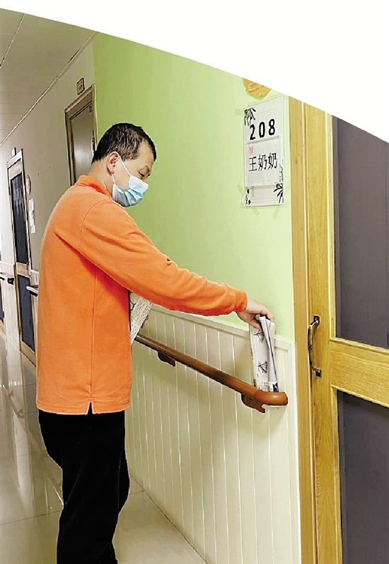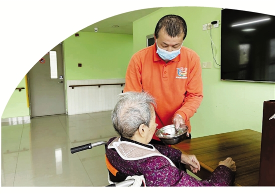 邱以国喂老人吃饭。