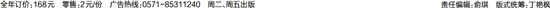 全年订价:168元 零售:2元/份 广告热线:0571-85311240 周二、周五出版